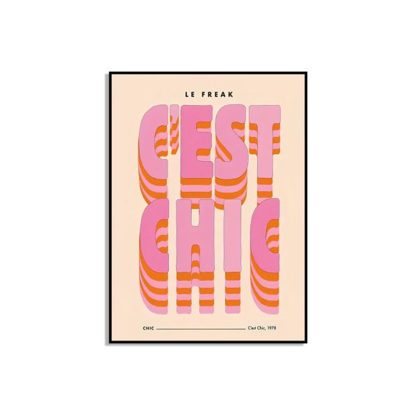De 'C'est Chic'-poster toont prachtig het levendige retro-ontwerp van de iconische Franse uitdrukking 'C'est Chic'. Dit kunstwerk viert de tijdloze danshit 'Le Freak' van Chic uit 1978. 'CHIC - C'est Chic, 1978'. Het product bevat slechts één poster.