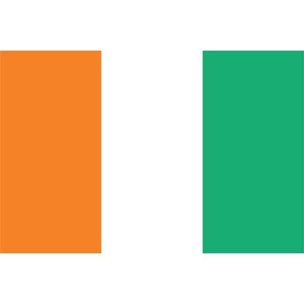 Deze sticker toont de nationale vlag van Ivoorkust, gekenmerkt door zijn verticale oranje, witte en groene banen. Perfect om nationale trots op je bezittingen te tonen.