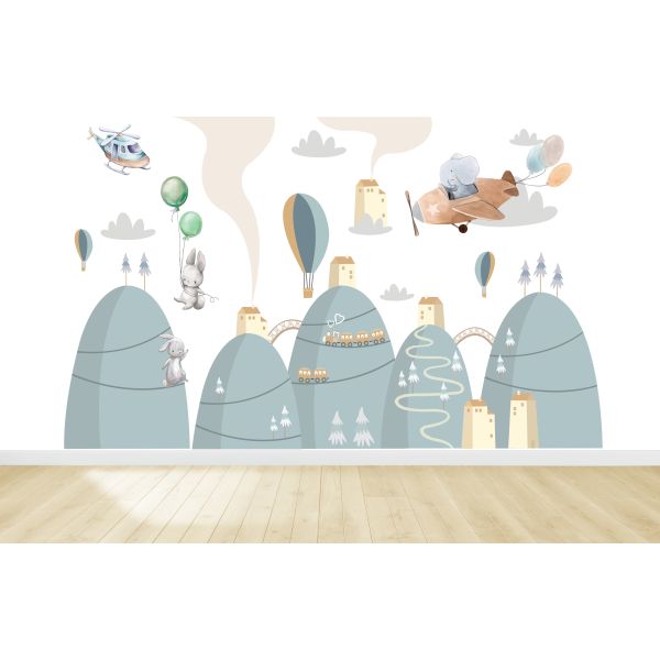 Muursticker - Bergen en vliegtuigen