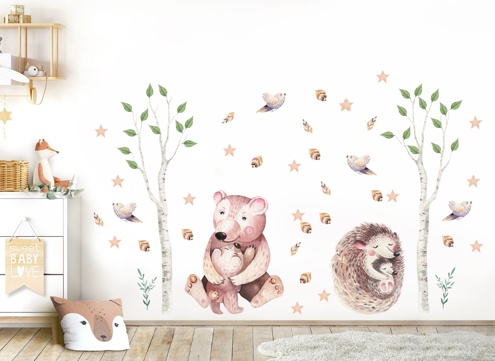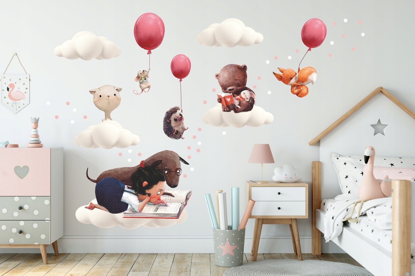 Onze muurstickers zijn niet alleen voor de schoonheid, ze zijn op zichzelf een speeltuin. Ze nodigen kinderen uit om te interacteren, hun eigen verhalen en avonturen te creëren. Bij elke muursticker hoort een verhaal waar kinderen op kunnen voortbouwen, en de kamer wordt een deel van het spel.