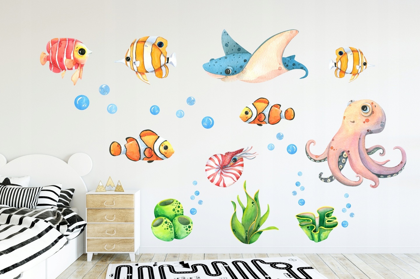 Kinderkamers zijn een plek waar dromen en spelen samenkomen, en hier komen onze muurstickers voor kinderen in beeld. Met deze stickers kun je een gewone kamer omtoveren tot een sprankelend toneel voor de eindeloze fantasie van kinderen. Kies uit muurstickers met vele verschillende motieven, zoals kleurrijke jungles, magische ruimtewerelden of mysterieuze onderwaterkoninkrijken, en zie hoe de kamer tot leven komt en creativiteit stimuleert.