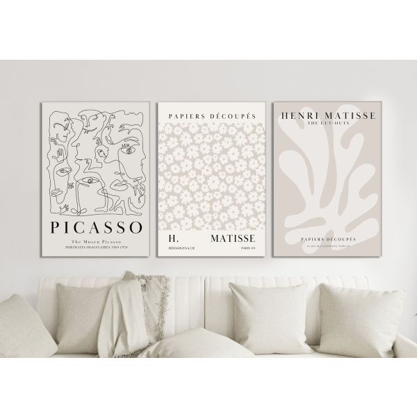 Deze poster set bevat iconische werken van Picasso en Matisse. De set omvat 'Portraits Imaginaires' van Picasso en 'Papiers Découpés' van Henri Matisse. Perfect voor kunstliefhebbers, deze collectie bevat een set van slechts 3 items.