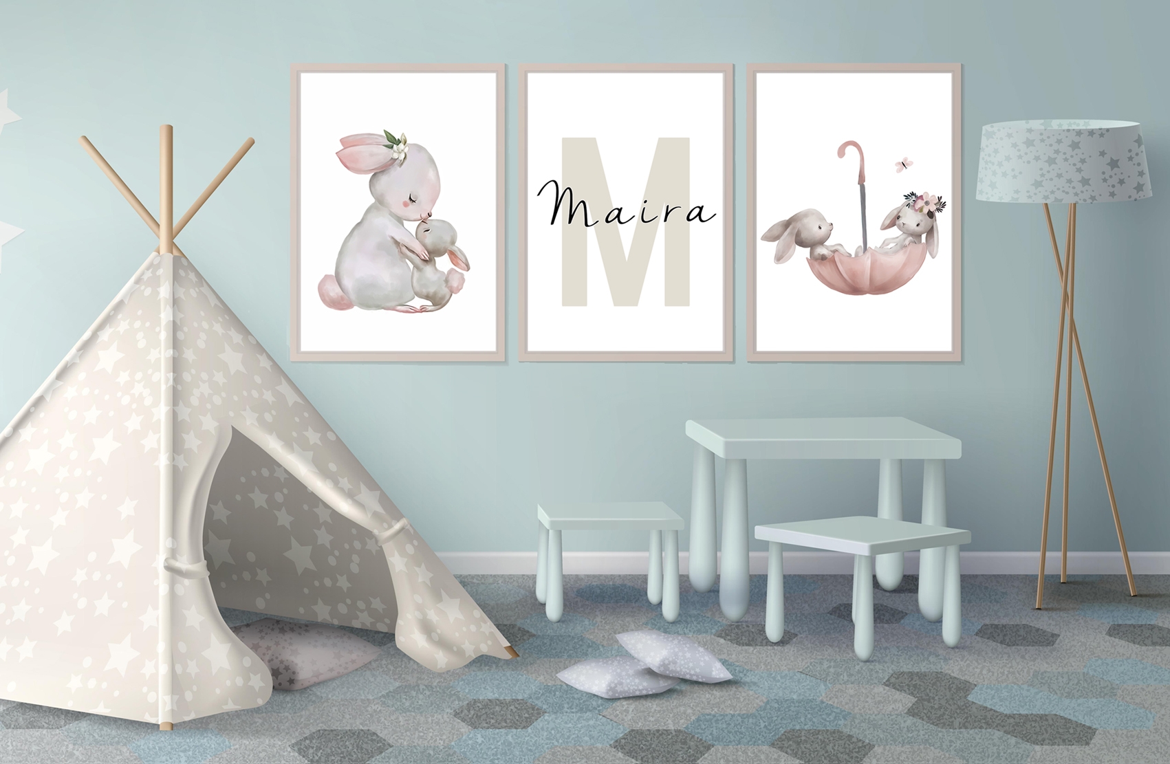 Onze waterverfposters kunnen worden aangepast met namen en zijn verkrijgbaar in verschillende motieven, van dieren en bloemen tot graafmachines. Deze posters worden zowel individueel als in sets van 3 verkocht, waardoor ze ideaal zijn voor het creëren van samenhangende wandkunst. De zachte, vloeiende kleuren zorgen voor een harmonieuze en rustgevende sfeer in elke kamer, perfect voor de kinderkamer of een gezellige hoek in huis.
