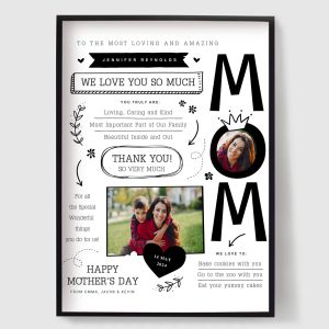 Ons assortiment van Gepersonaliseerde Moederdag Posters is de ideale manier om je waardering te tonen voor de speciale moeder in je leven. Elke poster kan worden aangepast met persoonlijke berichten, foto's, of zelfs een favoriete quote. Het is een hartverwarmend cadeau dat zeker haar hart zal raken en een dierbare herinnering zal worden. Ontdek ons assortiment en maak een unieke poster die jouw moeder echt viert!